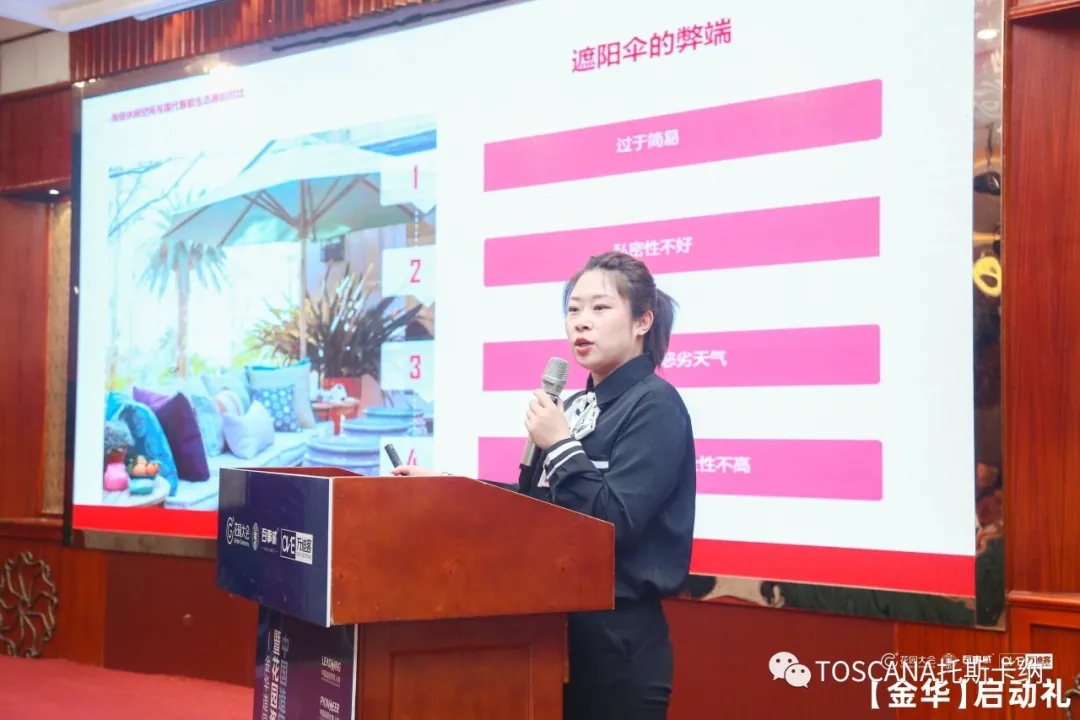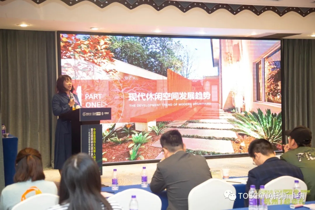 高媛媛女士聆听本次行业论坛分享的声音,就TOSCANA融于生活生态设计的理念,宣传绿色的生活态度,以现代庭院设计里的“变革式创新”为主题发表演讲。以此来描摹室外生活空间结构关系,重新定义花园理想生活,予人高品质的美学生活体验。