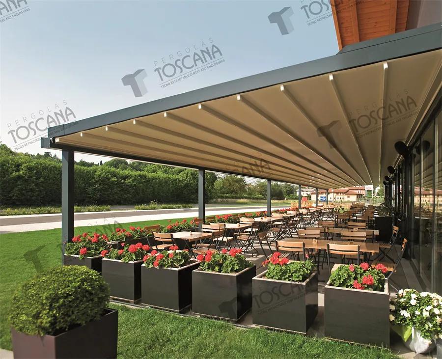 因此,能跟随天气情况自由开合的室外电动轨道天篷,就显得颇为重要了。