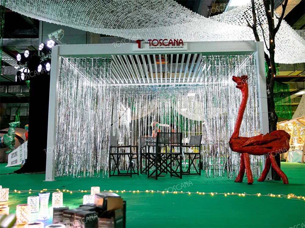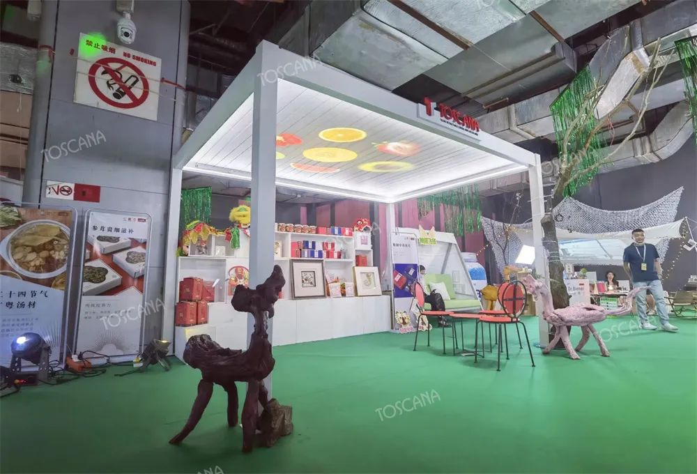 遮雨棚/遮阳篷:当设计与热爱碰撞,反应产生的视觉冲击被注入灵魂,为城市中的人群解锁多元生活方式。第11届广州家居展,托斯卡纳以诠释全新生活的产品和空间为载体 ,掀起声浪磅礴的关注热潮。