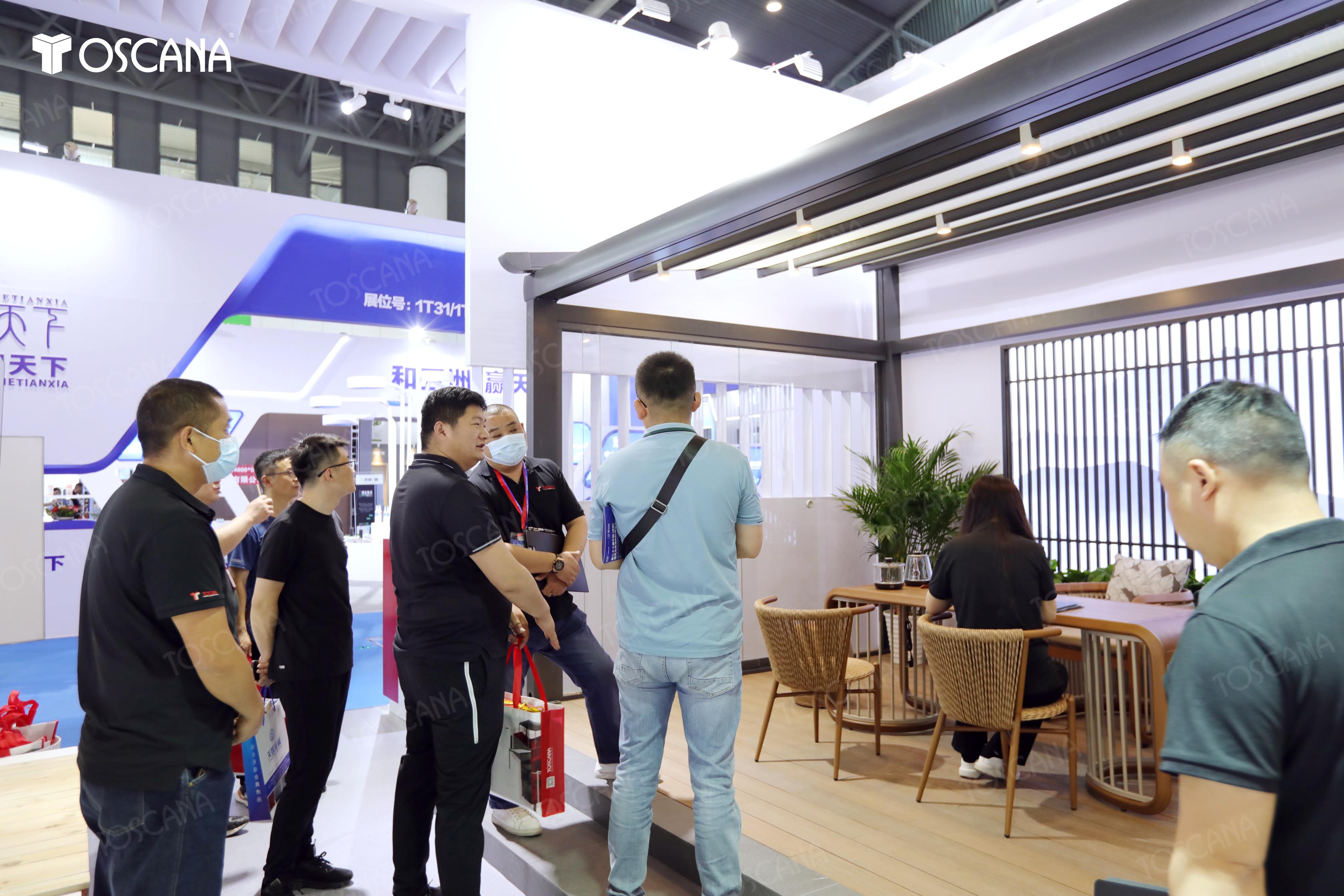 在此次饕餮盛宴中,TOSCANA高规格、高颜值、高标准的“人气空间”——TOP空间系列以全新室外场景展示尽显风范,凭借惊艳的颜值和优异的实用性,俘获了众多品牌方、设计师及加盟商的目光。