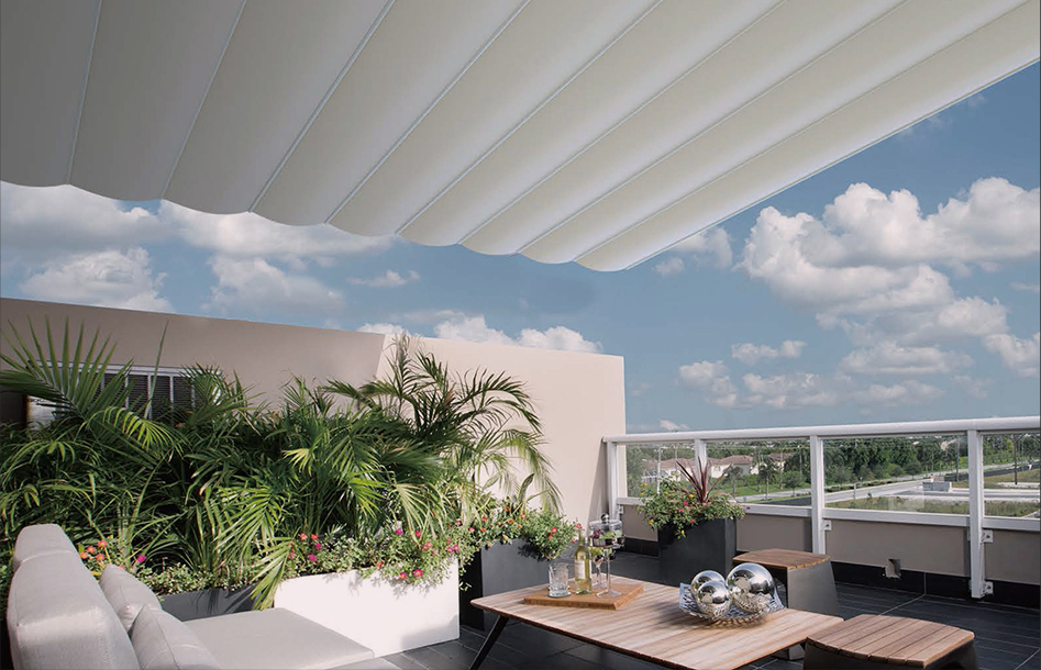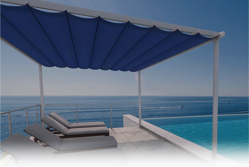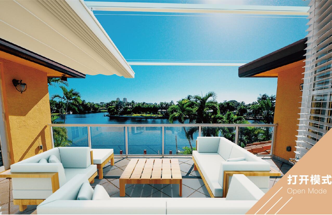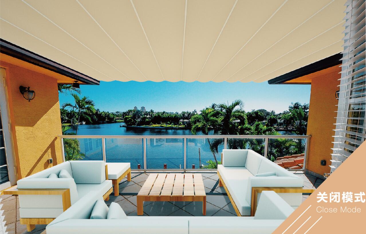 帘布采用顶级进口面料,可有效阻隔太阳辐射,减少阳光对人体的伤害。可选择配置遥控系统,一键操作,伸缩灵活,收放自如。