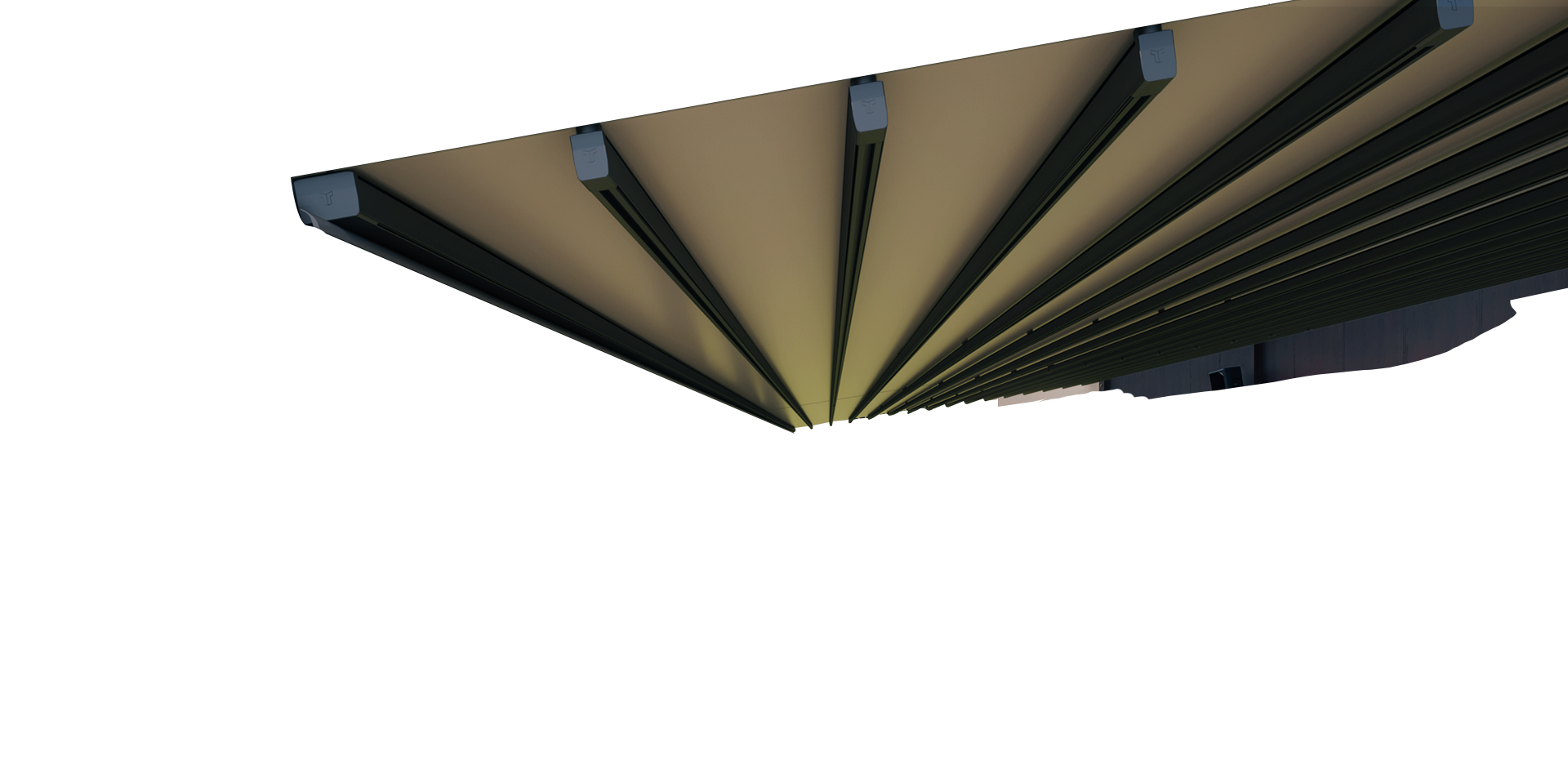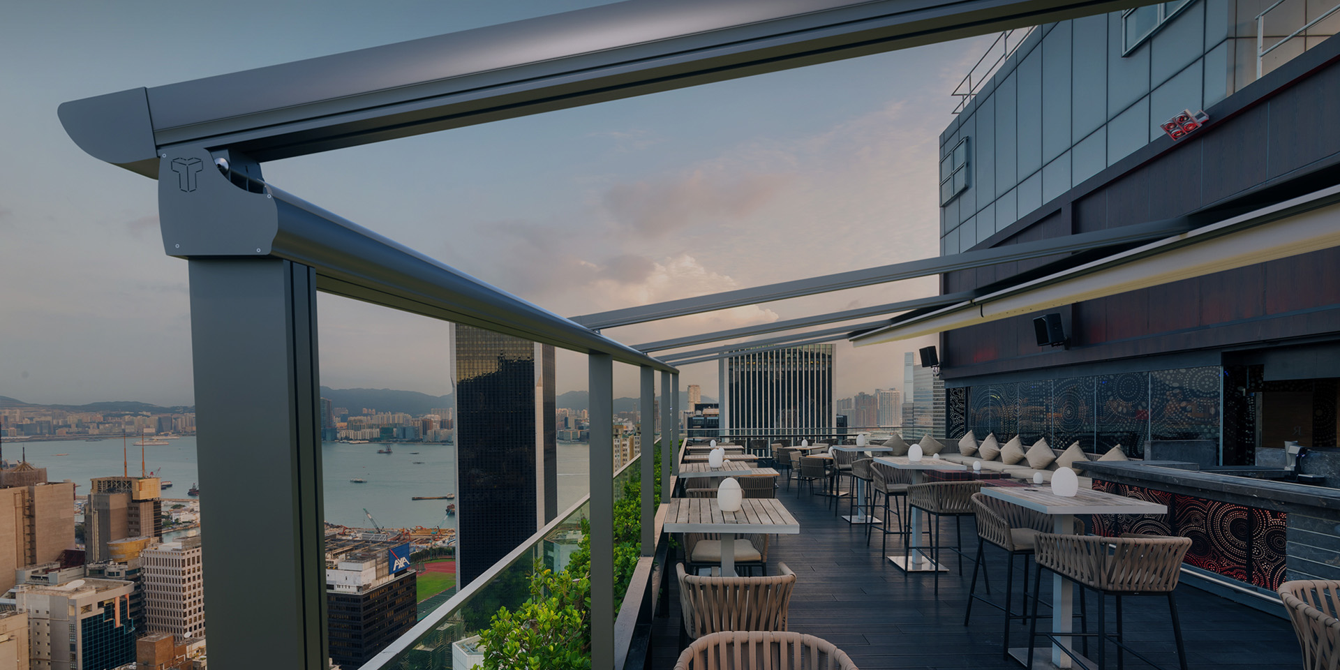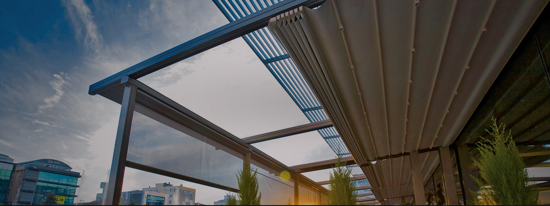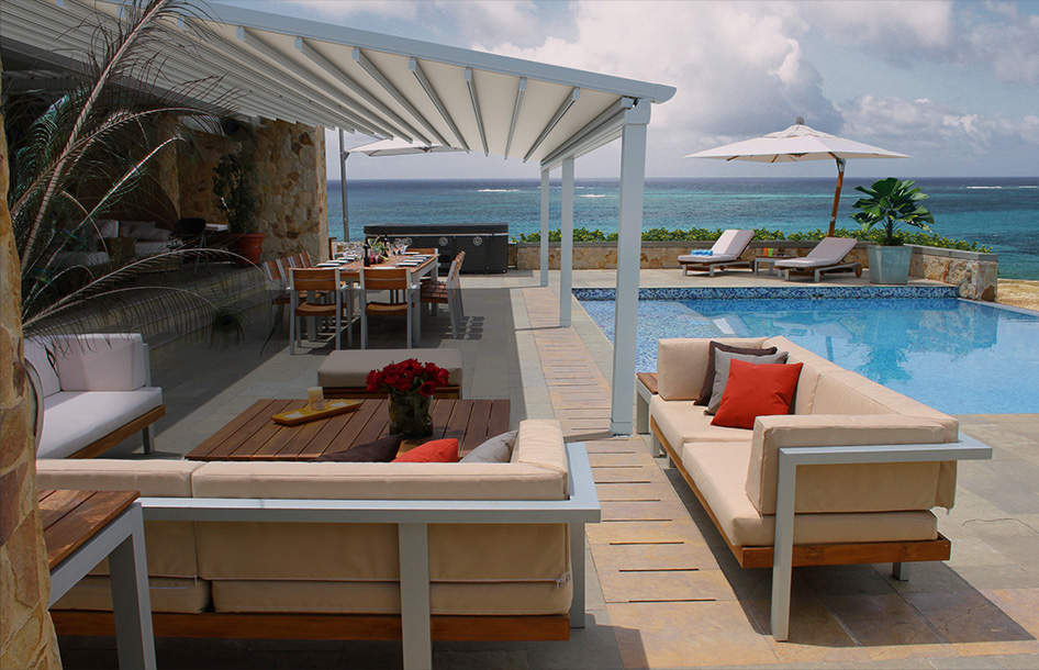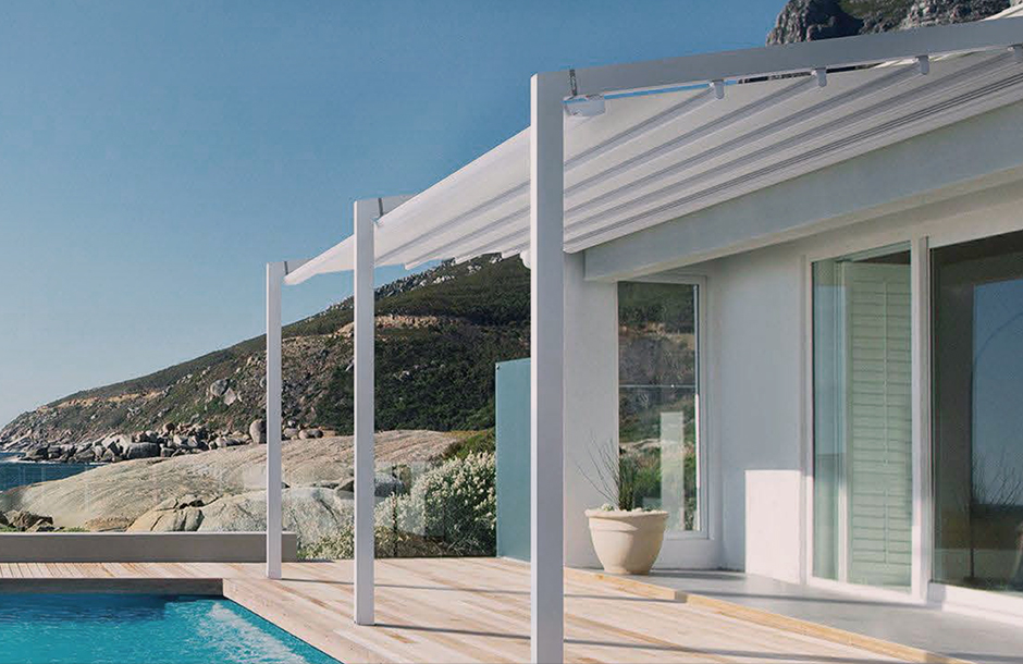 TOSCANA-室外电动轨道天篷外观简约时尚,打开时可以享受大自然的阳光与空气,闭合后具有100%防水和有效进行遮阳隔热的功能,是现代休闲商业场所与别墅住宅打造高品质时尚生活方式的最佳选择。